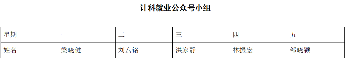 通过20天考核以及毕业生事务性工作的有序进行,伟德国际betvlctor1946就业小组确定了2018-2019学年干事名单,并划分工作内容与属性。现公布计科就业小组干事名单。